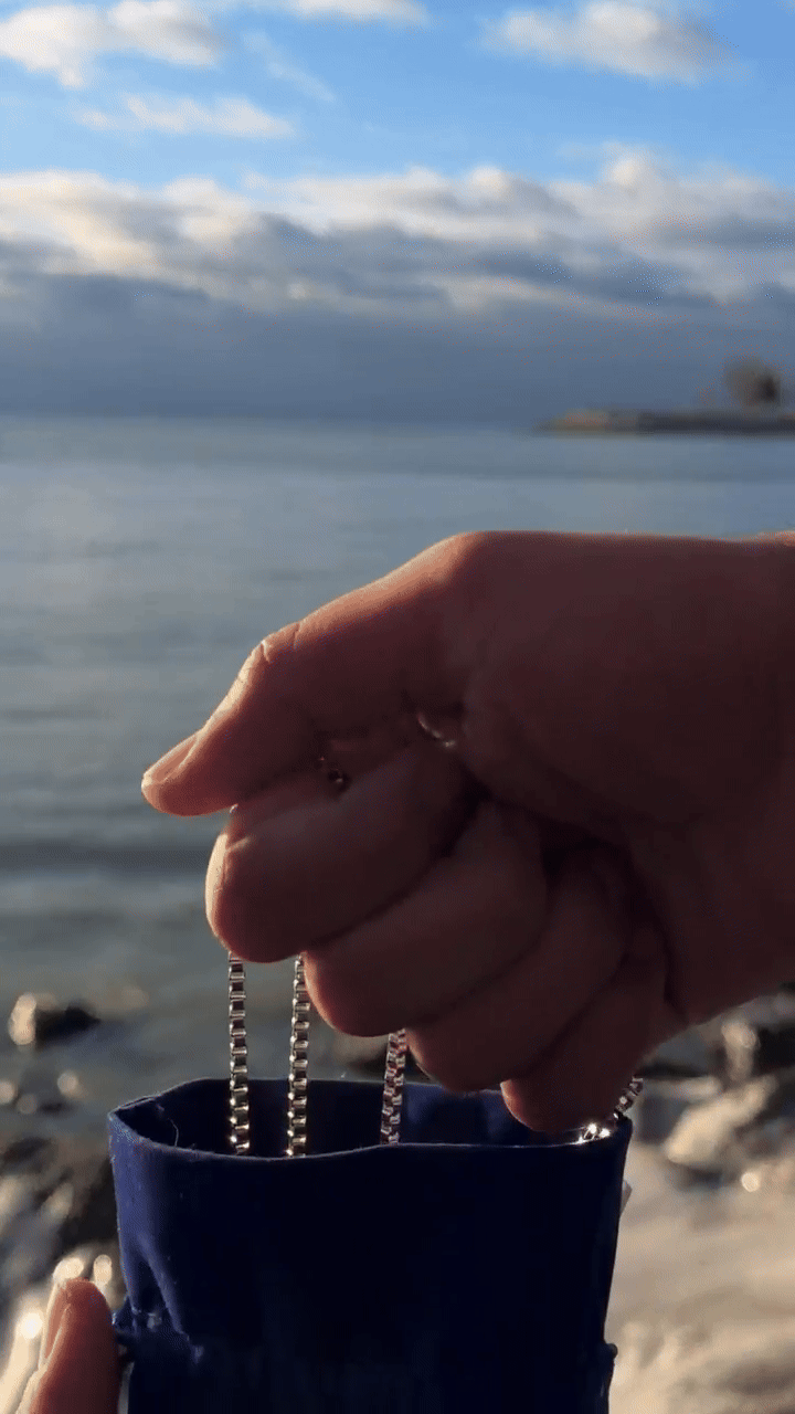 Use a soft cloth to gently wipe the chain after wear and store it in a dry place. Avoid water, sweat, and harsh chemicals to maintain its shine and finish.